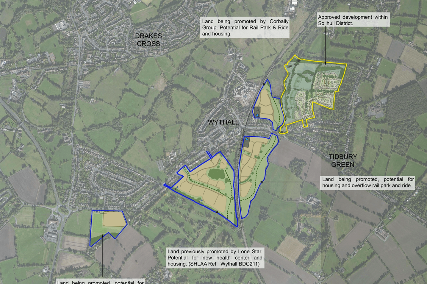 Lone Star are promoting the above sites in Wythall, which have presented a blueprint opportunity to provide Wythall with some much needed improved community services and facilities. These include the potential for a station car park, land for community uses; open space, country park, cycle routes, land for care uses and potential land for a new primary school, as well as a wide range of private and affordable housing.